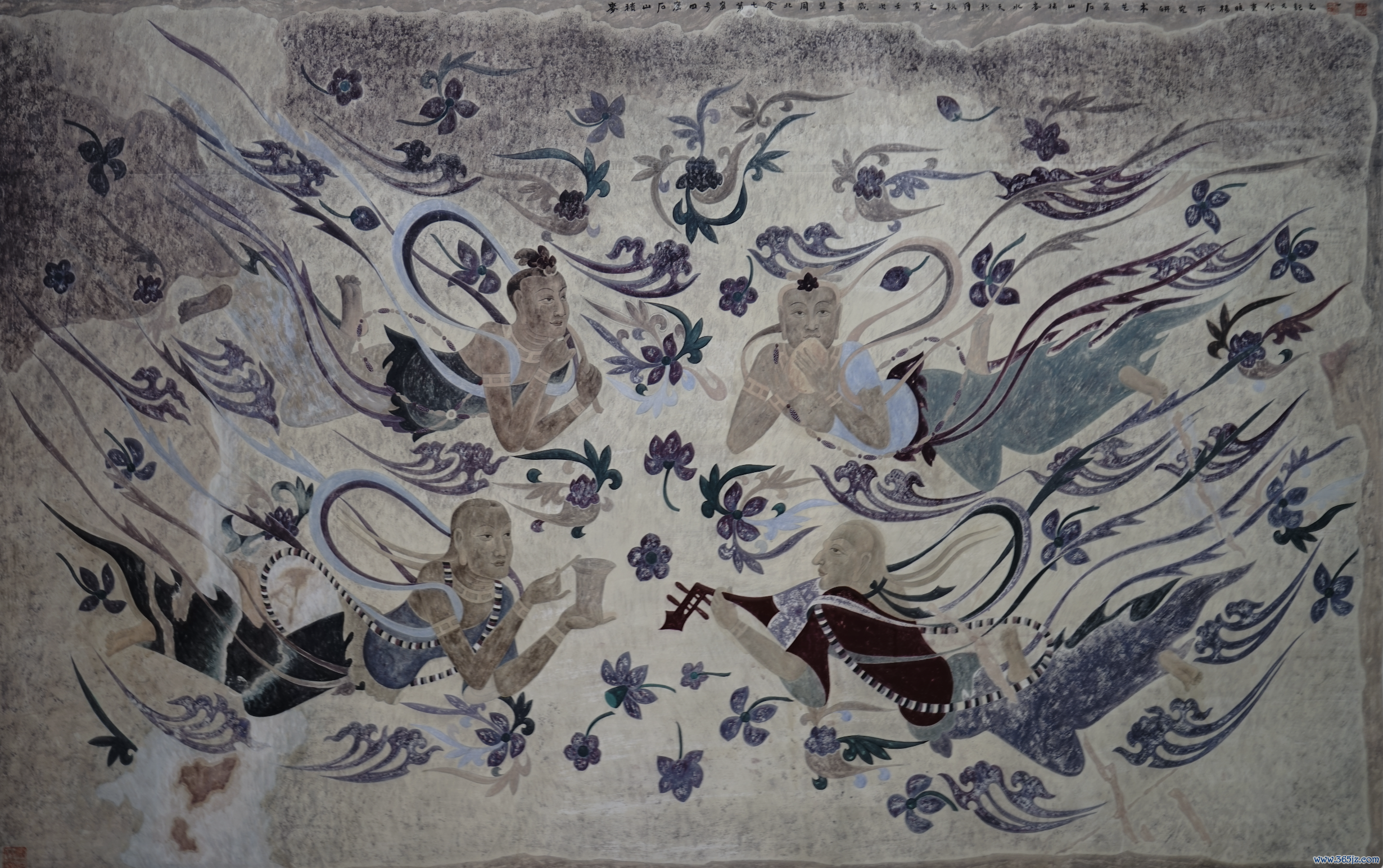 在展厅内,北朝时期的“西方净土变”与“睒子本生故事”以宏大的叙事手法,叙述着古人的信仰与智慧;“薄肉塑飞天”壁画系列,泥塑与绘画的完美结合,让飞天的衣袂飘逸,似乎随时准备突破界限;而那幅“转马图”,红鬃骏马驮着人物,视角的巧妙变换,仿佛在挑战“爬坡”的极限,趣味横生,令人流连忘返,心生喜悦。