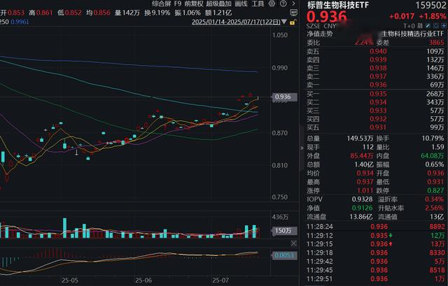 目前,标普生物科技在经过回调后,正处于稳步抬升阶段,或正处于较好的布局窗口期。